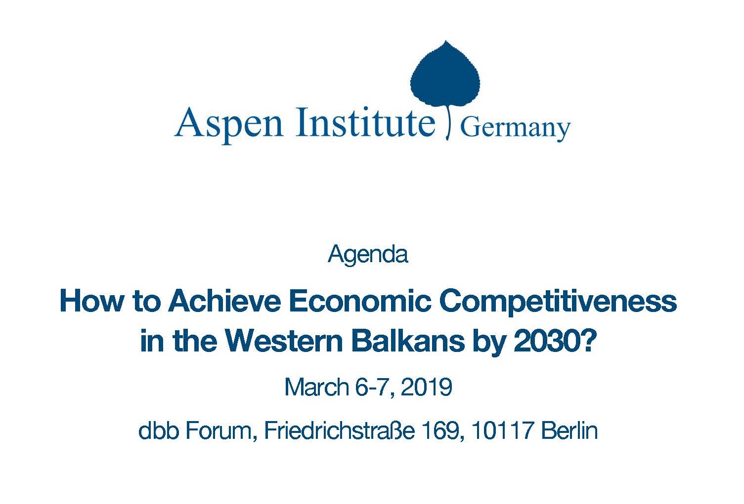 Predstavnici Ede su učestvovali na forumu na temu “Kako obezbijediti ekonomsku konkurentnost Zapadnog Balkana do 2030” koji je održan 6. i 7. marta 2019. u Berlinu, u organizaciji Aspen Instituta. Na forumu je učestvovalo dvadeset pet predstavnika think tank organizacija iz Njemačke, Austrije, Srbije, Sjeverne Makedonije i BiH, kao i predstavnici OECD i Odjela za proširenje EU Njemačkog federalnog ministarstva za ekonomske poslove i energiju.