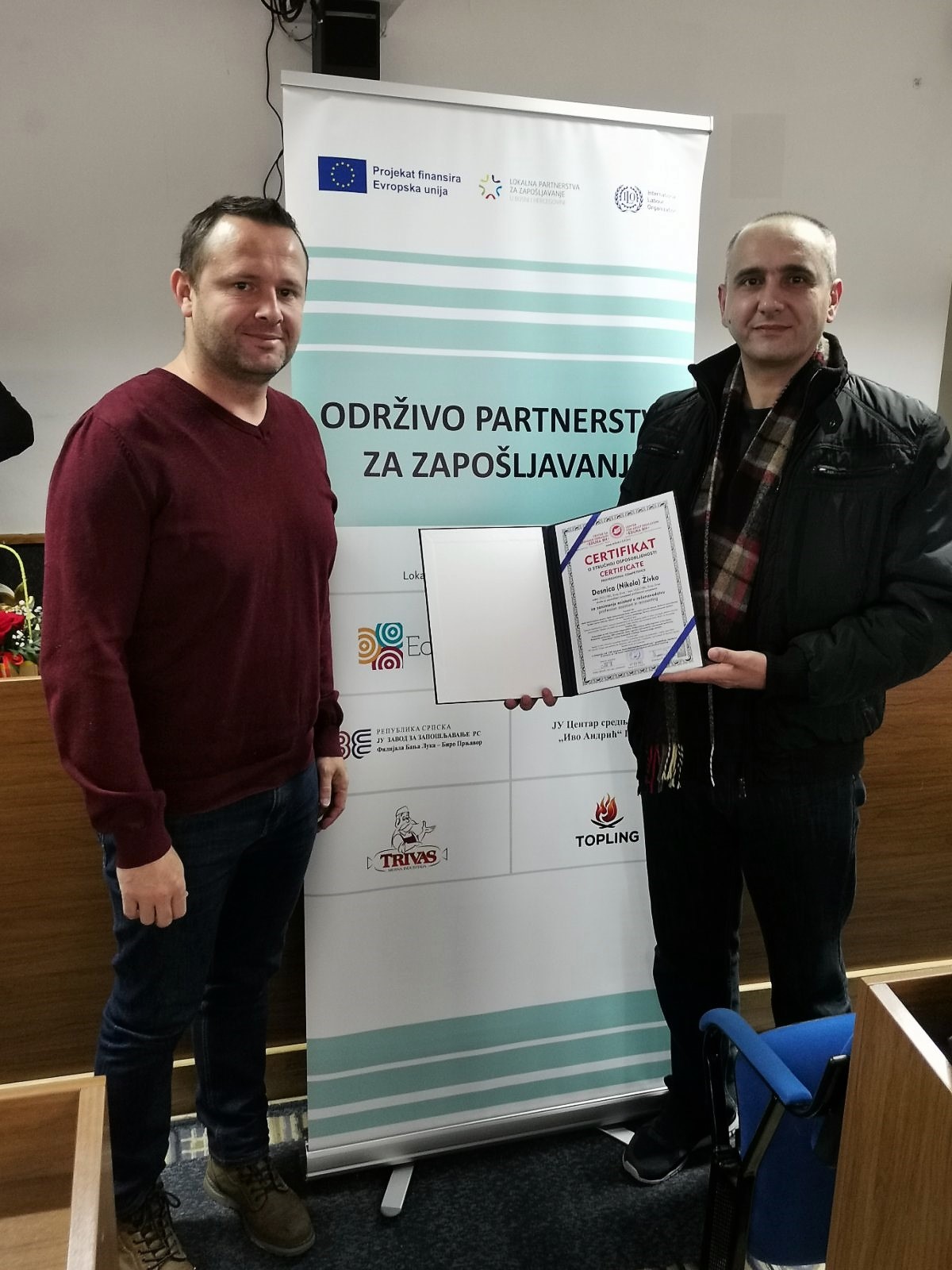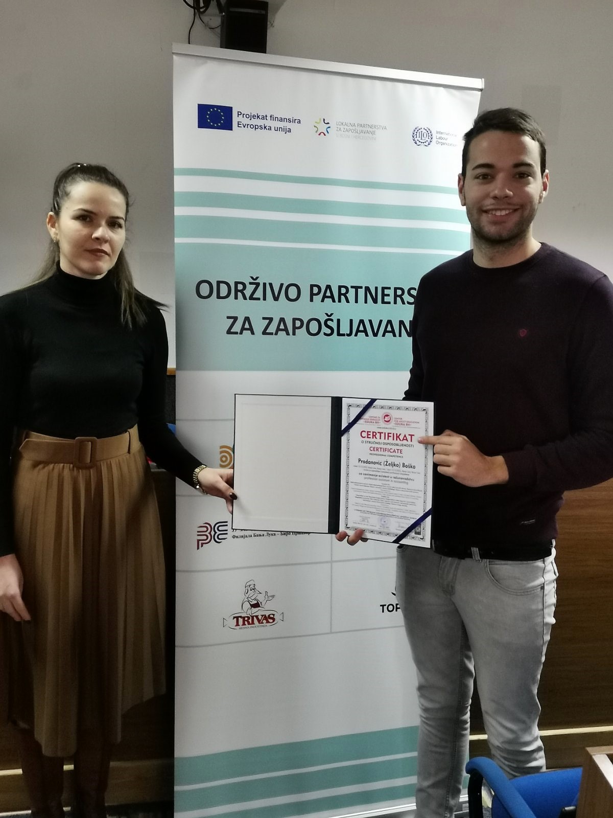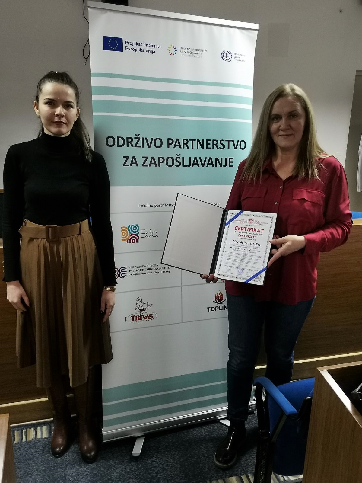Obuku je proveo Centar za obrazovanje odraslih Eduka u okviru projekta “Održivo partnerstvo za zapošljavanje” koji realizuje Lokalno partnerstvo za zapošljavanje (LPZ) Prnjavor.