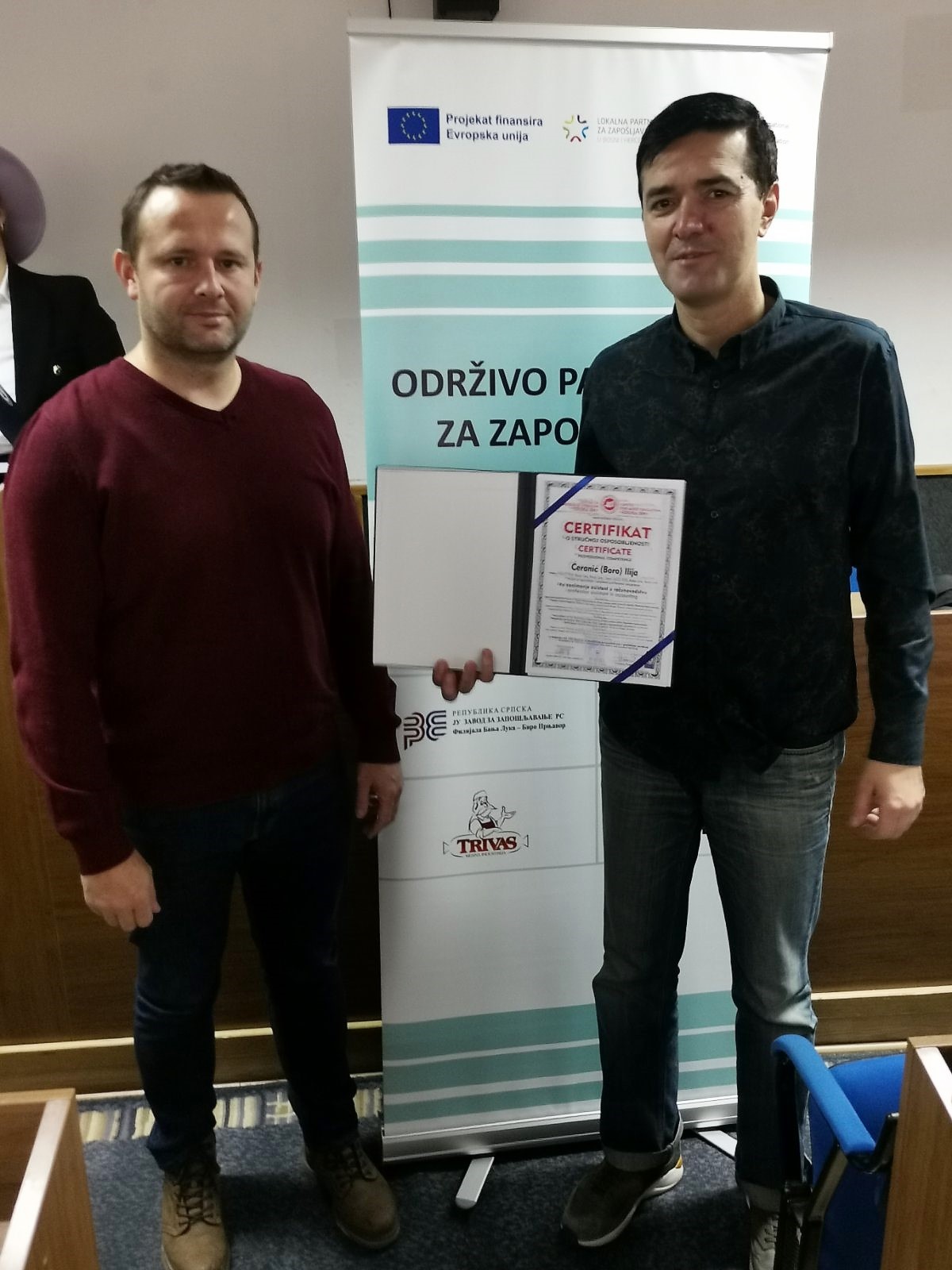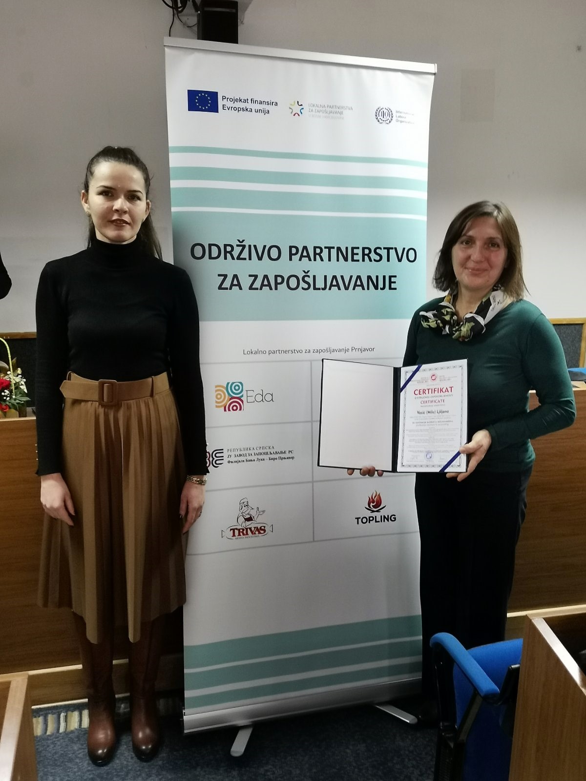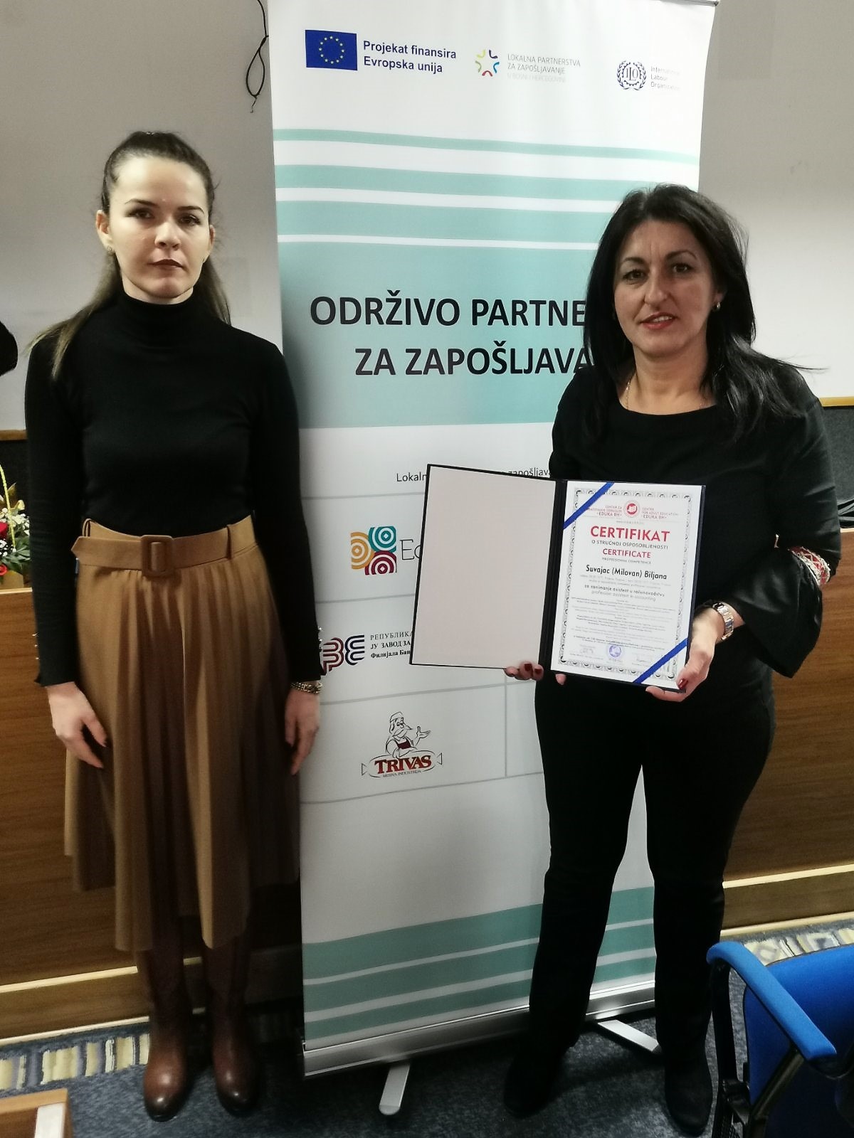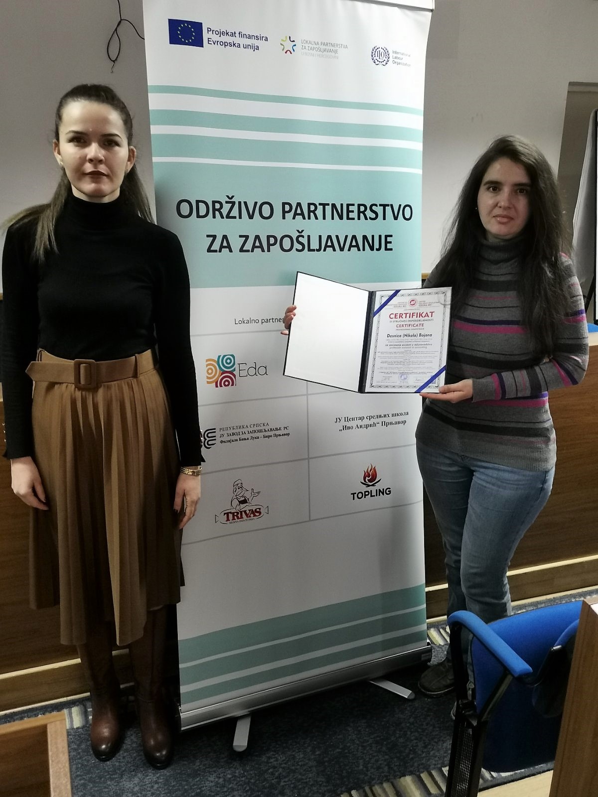 Obuku je proveo Centar za obrazovanje odraslih Eduka u okviru projekta “Održivo partnerstvo za zapošljavanje” koji realizuje Lokalno partnerstvo za zapošljavanje (LPZ) Prnjavor.