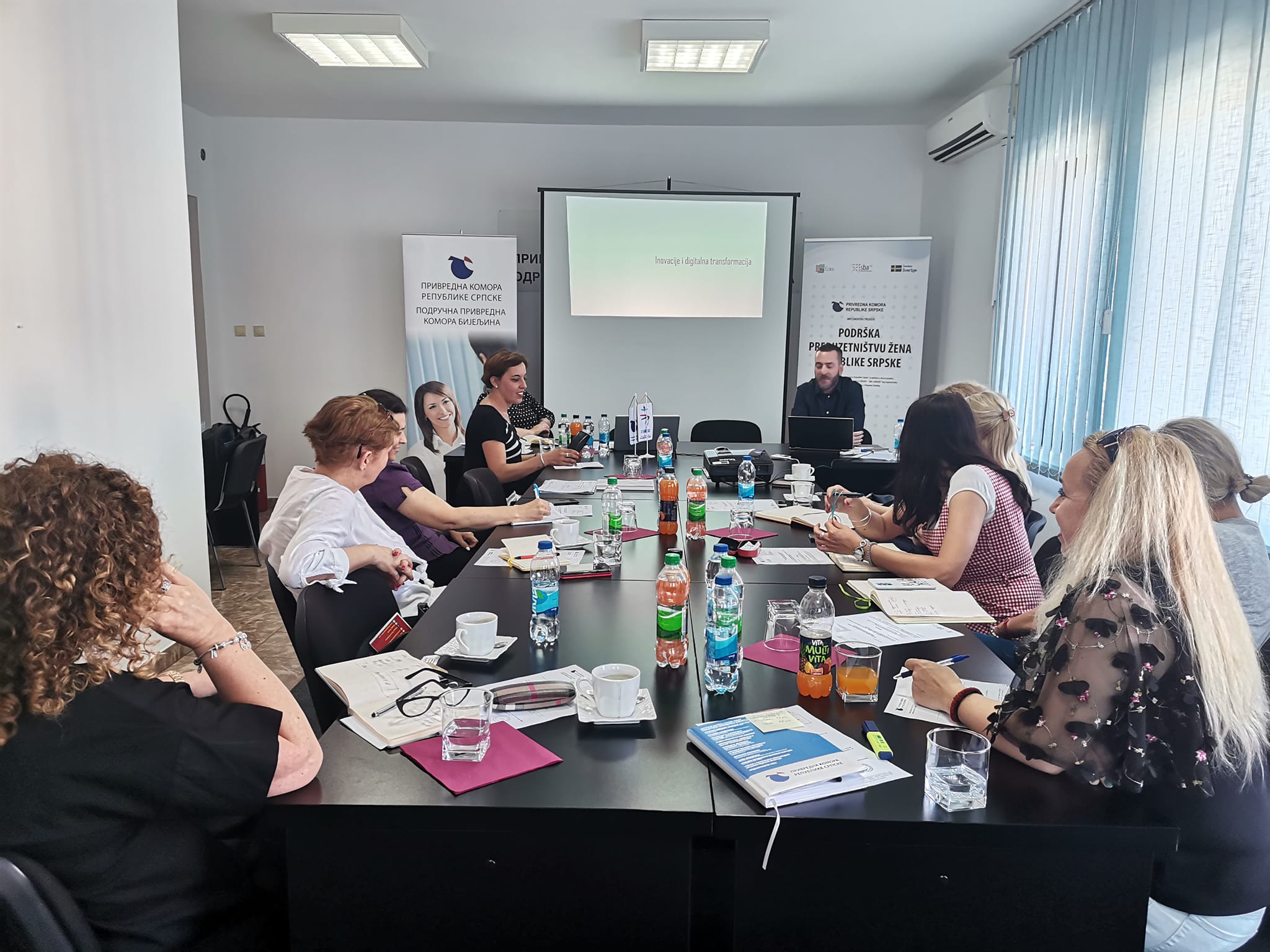 U prethodne dvije sedmice, u okviru projekta „Podrška preduzetništvu žena RS“, održane su proširene sjednice Savjeta za preduzetništvo žena Područnih privrednih komora Banja Luka, Bijeljina, Doboj, Istočno Sarajevo i Trebinje. Na sjednicama je prisustvovalo preko 60 preduzetnica, a tom prilikom su predstavljene realizovane aktivnosti Savjeta za preduzetništvo žena PKRS, te naredne aktivnosti u okviru projekta „Podrška preduzetništvu žena Republike Srpske (PPŽ RS)“. U okviru sjednice, održana je i obuka za preduzetnice na temu „Digitalizacija i inovacije“.