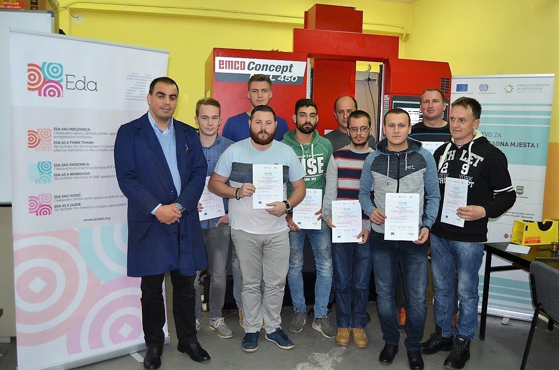 U okviru projekta “Partnerstvo za kvalitetna radna mjesta i konkurentnost”, završena je obuka prve grupe od 5 osoba za zavarivača, kao i druge grupe od 9 osoba za CNC operatere. Svi polaznici obuke su iz Prnjavora, nezaposleni su, i većinu njih čine mlade osobe. Obuka za zavarivače i CNC operatere u trajanju od 40 školskih časova se izvodila na Mašinskom fakultetu u Banjaluci. Učesnici obuke su veoma zadovoljni pruženom prilikom, kao i samim kvalitetom obuke. Obuka nove grupe zavarivača počinje u ponedjeljak, 3.12.2018.