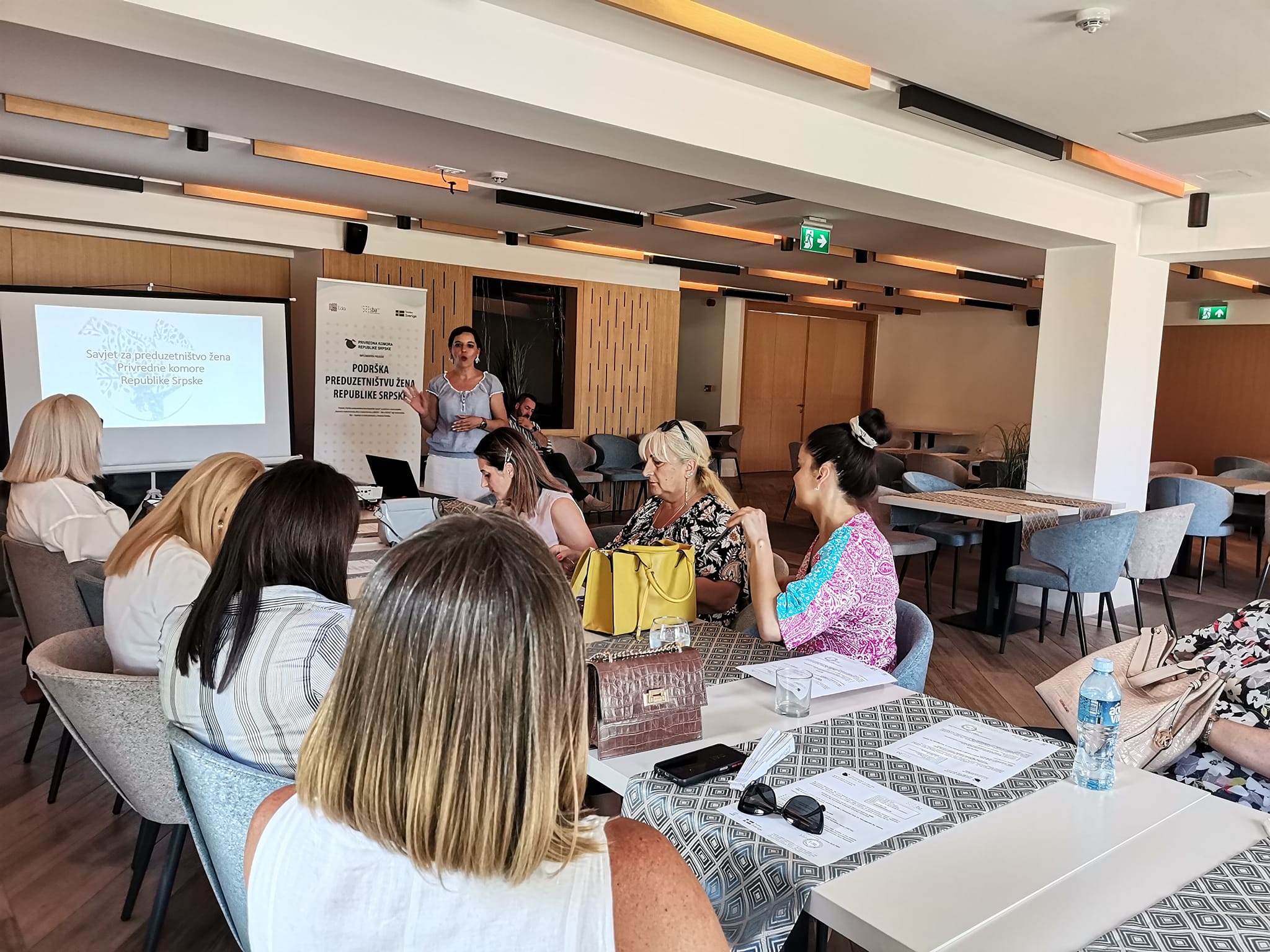 Council sessions and training were organized within the project “Support to Entrepreneurship of Women of Republika Srpska”, which is being implemented by the Chamber of Commerce of Republika. The project envisages activities to strengthen the capacity for the development of women’s entrepreneurship through the organization of professional training and conferences on women’s entrepreneurship with the aim of connecting and networking women, as well as improving the knowledge and skills of female entrepreneurs. In addition, support for the promotion of entrepreneurship, as well as the activities of the Women’s Entrepreneurship Council was also envisaged.