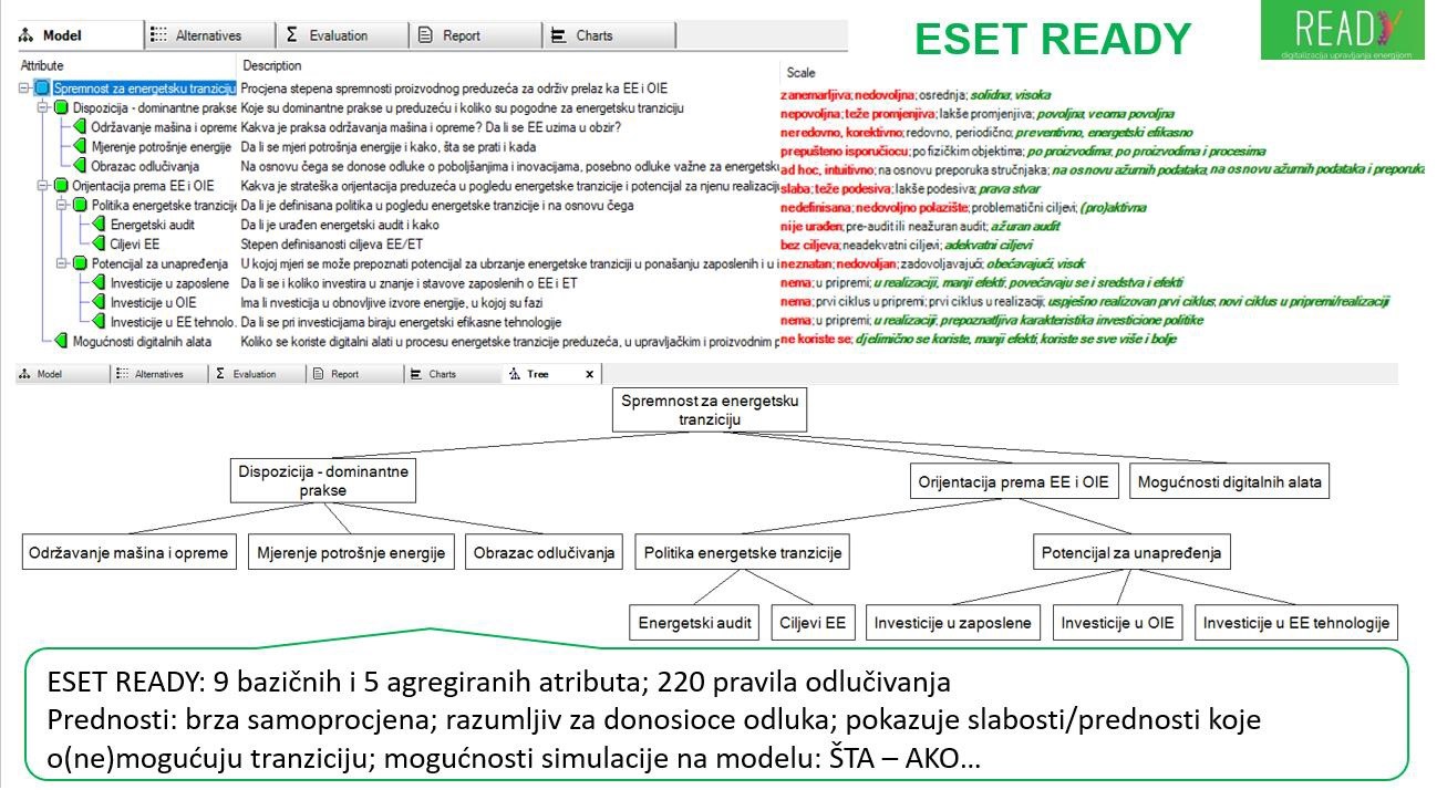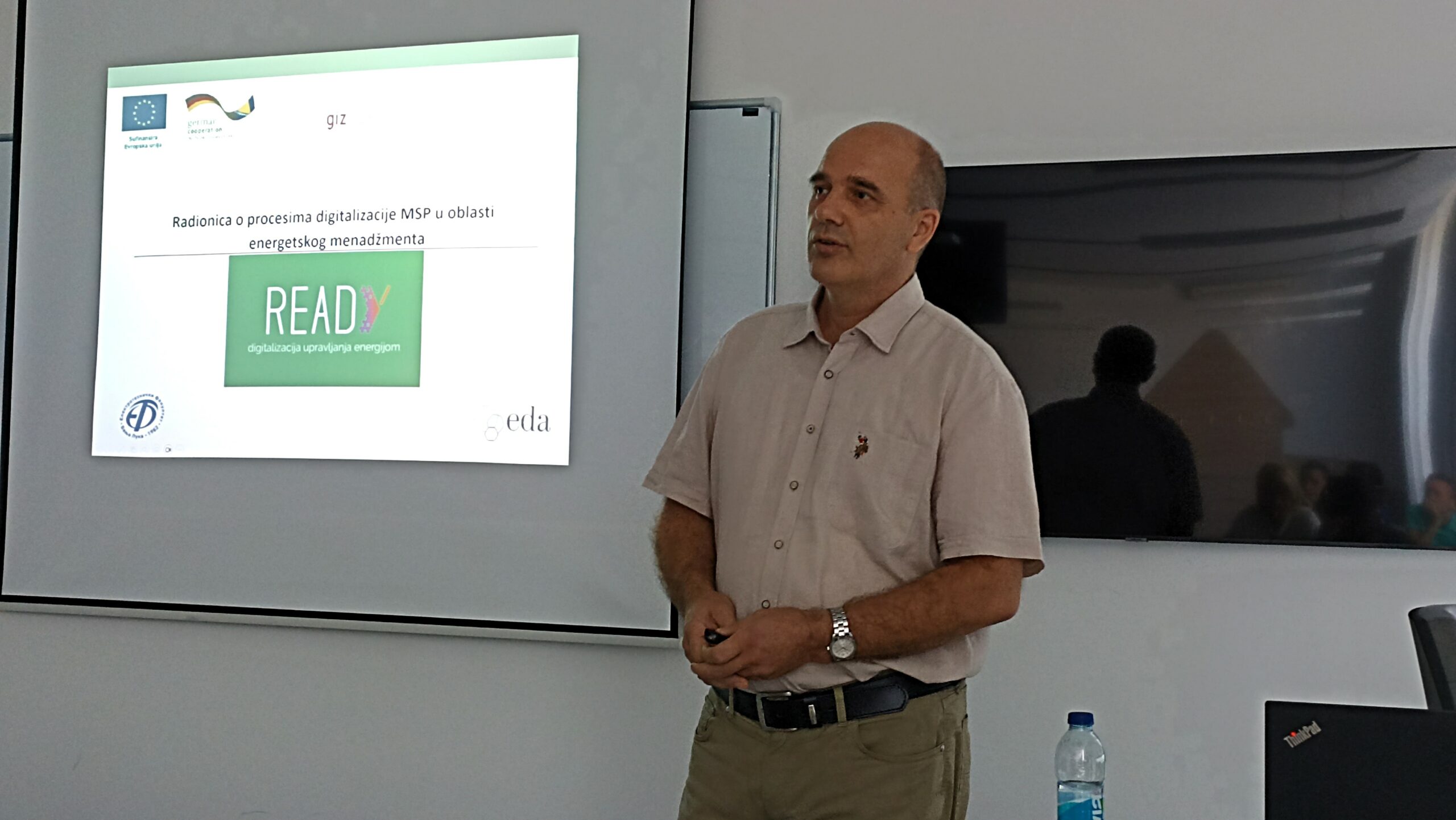 Na radionici je ukazano na značaj energetskog audita i energetskog menadžmenta za industrijska preduzeća, uz prezentovanje mogućnosti korišćenja senzora pri uvođenju digitalnih rješenja u oblasti energetskog menadžmenta. Takođe, diskutovano je o zahtjevima i koristima od inkorporiranja digitalnih rješenja u proces energetskog menadžmenta u poslovne procese. Poseban osvrt je dat na donošenje poslovnih odluka, pri čemu je Zdravko Miovčić, direktor Ede, prezentovao ESET READY ekspertski sistem za podršku donošenju odluke o ulaganju u oblast energetskog menadžmenta, koji je razvijen u okviru projekta.