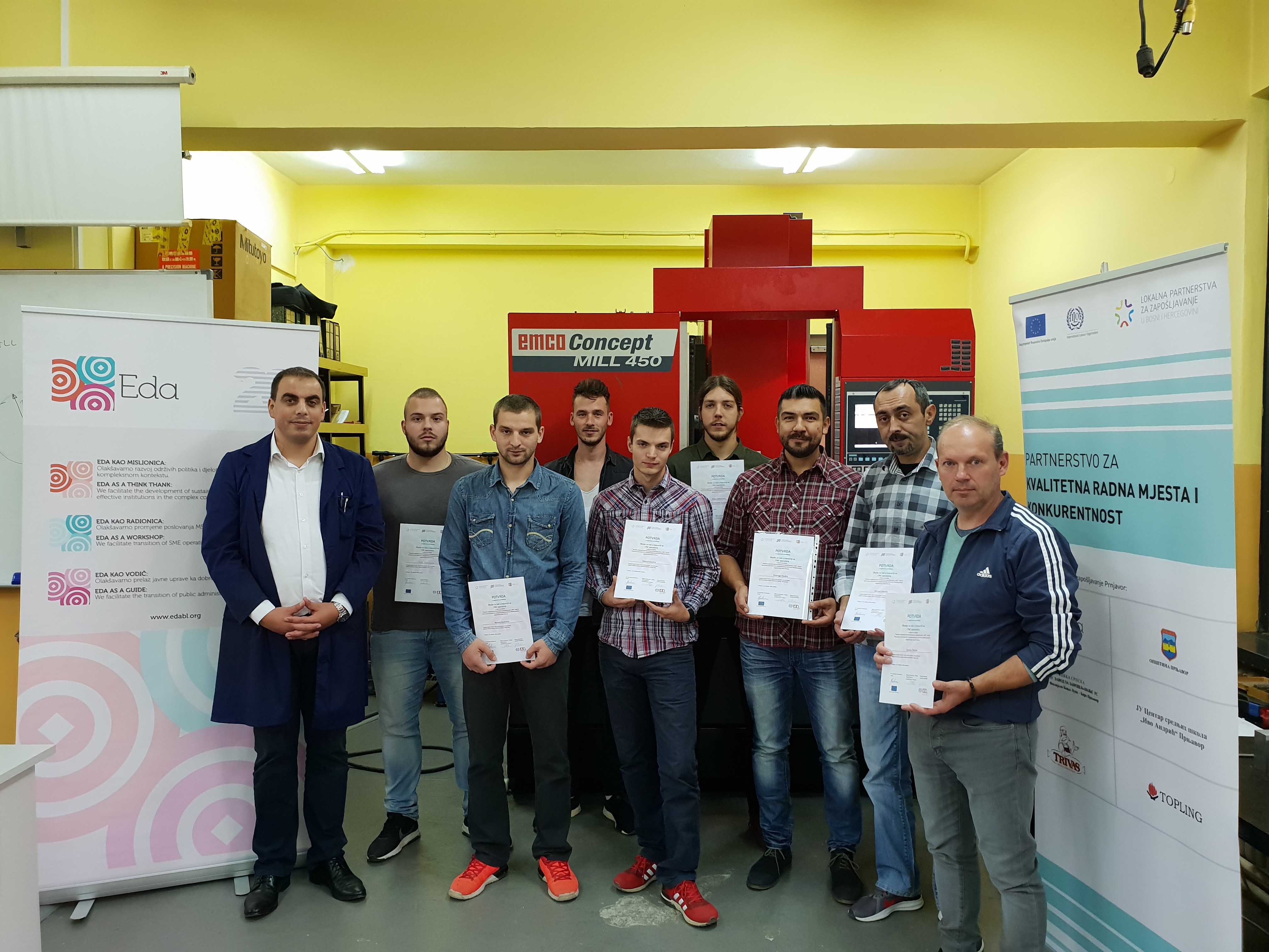 U okviru projekta “Partnerstvo za kvalitetna radna mjesta i konkurentnost”, završena je obuka prve grupe od osam nezaposlenih osoba iz Prnjavora za CNC operatere. Obuka u trajanju od 40 školskih časova se izvodila na Mašinskom fakultetu u Banjaluci. Učesnici obuke su veoma zadovoljni pruženom prilikom, kao i samim kvalitetom obuke. Obuka nove grupe polaznika počinje u ponedjeljak, 22.10.2018.